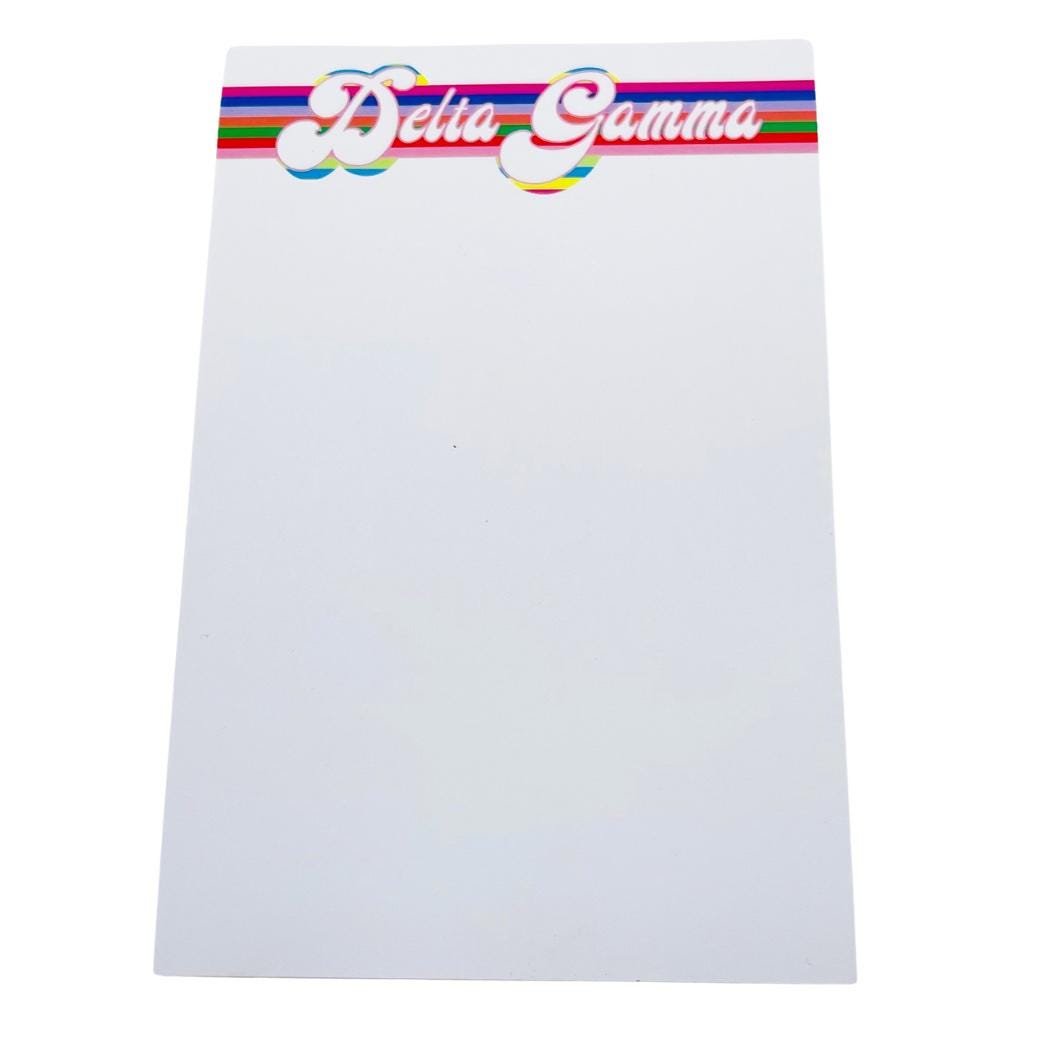 Take it to class, or keep it in your room. These sorority notepads are super cute and super convenient! Product size is 5.5" x 8.5". Our Retrostripe design is exclusive to us at SarahNdipity Shop. This notepad has 50 pages....