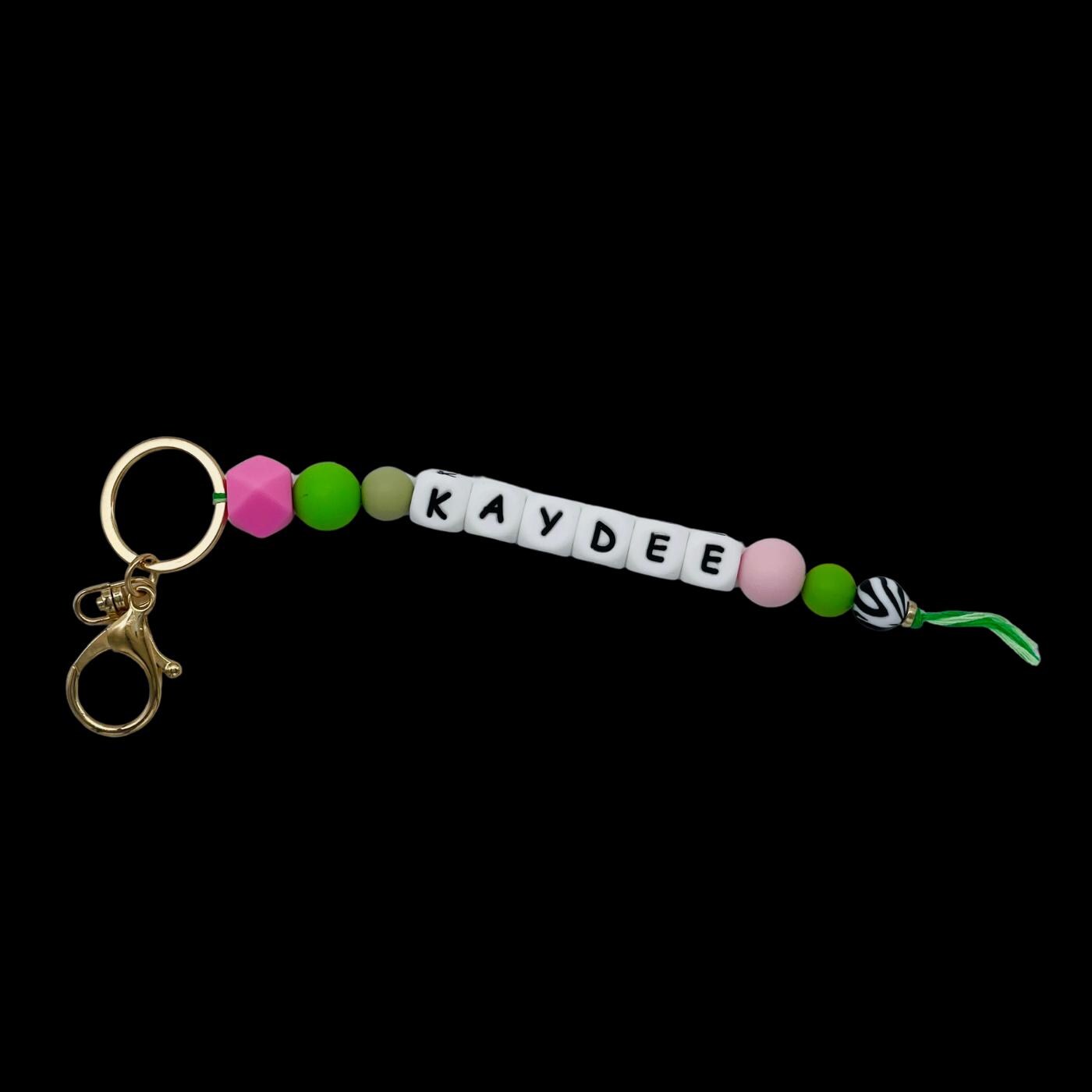 Our silicone beaded keychains come in your unique sorority colors and lettering. Colors and sizes of beads may vary.