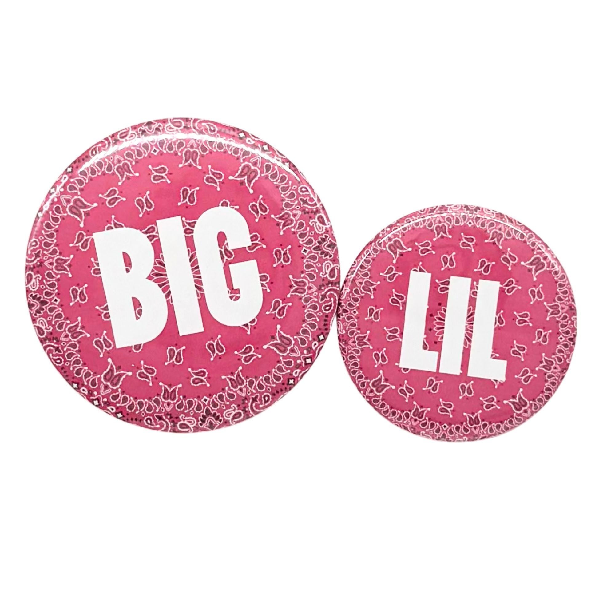 Celebrate the special bond during Big/Lil Week and Reveal Day with our charming Big/Lil/GMom pin-back buttons! Available in two fun sizes, 2.25" and 3", these buttons feature playful designs in bandana, cabana stripe, peopny, cheetah and bandana - pick your matching styles and show off your unique connection. Whether you're gifting a new Lil, honoring a Big, or cherishing a GMom, these buttons add a delightful touch to your celebrations.