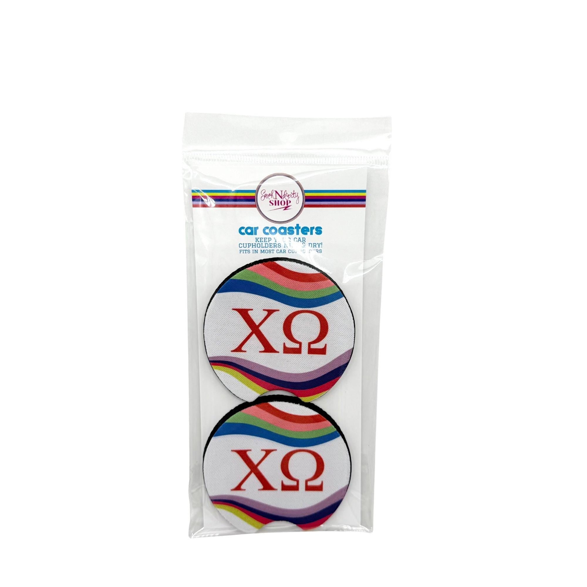 Keep your car cupholders nice and dry while adding some greek flair to your ride with these neoprene car coasters! They come in a set of two per package and fit in most car cupholders. This top-trending car accessory is such a great grab-and-go gift to stock up on!